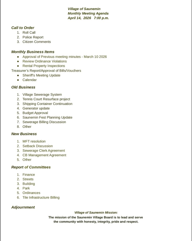 Village of Saunemin | 70 North Street | Saunemin, Illinois 61769 | Copyright © 2014 | Website designed by laurawerkes web & graphic design